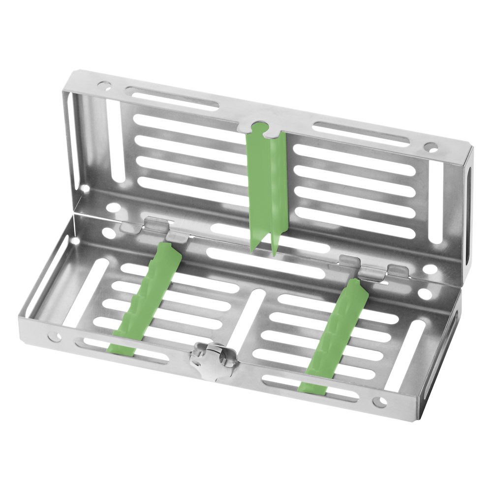 UN is the smallest model in the GAMMAFIX line of sterilization trays. It is practical and suitable for holding the instruments needed for a first visit or for organising kits for small dental procedures. Available in 8 different colours of silicone.